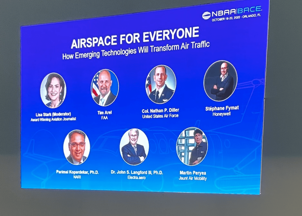 Panelists at NBAA-BACE discuss the challenges for air traffic management with new types of aircraft and advanced technologies. (Photo: Jessica Reed)