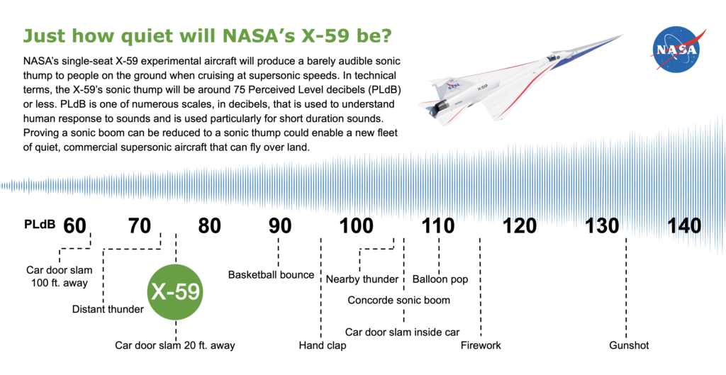 The Quesst mission involves working on the X-59 experimental aircraft to keep the individual shocks separated and to prevent them from combining. Ideally, the only sound produced should be a low thud—”kind of like your neighbor across the street slamming their car door,” Haering said. “If you were listening for it, you’d probably hear it, but if you’re doing something else, you may not even notice it.”