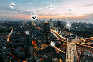 Joby’s electric air taxi is designed to carry a pilot and four passengers at speeds of up to 200 mph, offering high-speed mobility with a fraction of the noise produced by helicopters and zero operating emissions.