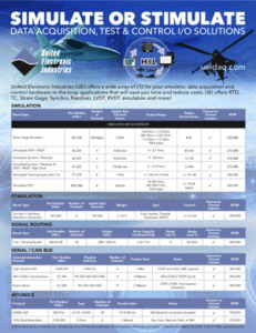United Electronic Industries (UEI) offers a wide array of I/O for your aerospace and avionics data acquisition and control hardware-in-the-loop applications that will save you time and reduce costs. These solutions allow you to maintain critical uptime, monitor health with built-in diagnostics and eliminate system complexity. UEI provides the flexibility to use any of our I/O boards on any of our Cube, Rack and MIL-style chassis. These also remove the worry of obsolescence with our 10-YR availability guarantee. Your I/O applications are sustainable for the long-term with UEI.