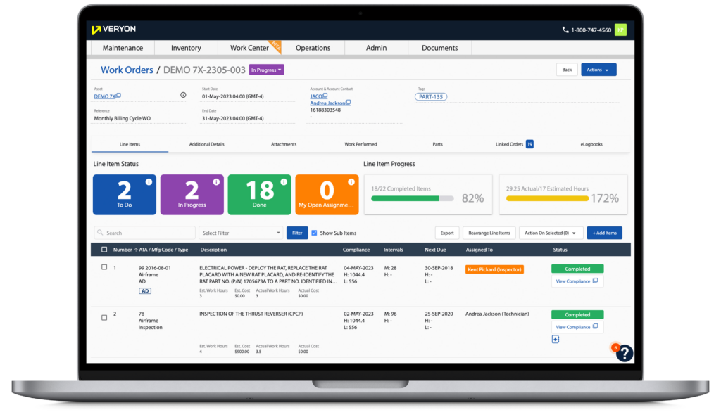 The Veryon Work Center aims to expedite aircraft return-to-service by unifying various aspects of aviation management. According to Veryon’s website, the software provides real-time airworthiness information. It also offers customizable workflows, pricing profiles, and invoicing solutions.