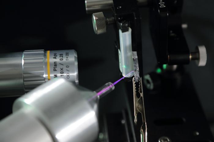 The plasma jet pictured above is made from helium, resulting in a purple glow. (Photo: Tom Cogill)