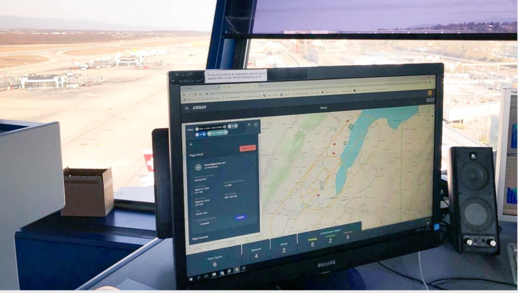 An AirMap UTM Dashboard at Geneva Airport monitoring manned and unmanned traffic. Photo: AirMap